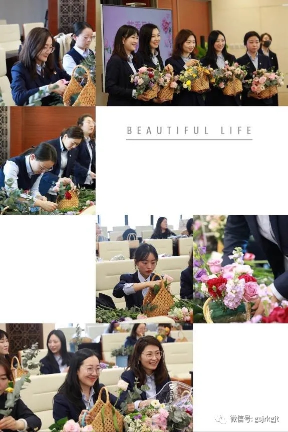 女職工們興趣盎然,邊看邊學(xué),享受親自創(chuàng)作的樂(lè)趣和插花藝術(shù)帶來(lái)的快樂(lè)。一支支花,經(jīng)過(guò)大家修枝剪葉、色彩搭配,置入花籃,一盆盆錯(cuò)落有致、色彩鮮艷、造型各異的插花作品呈現(xiàn),展現(xiàn)出大家對(duì)幸福的感悟和對(duì)美的理解與追求。活動(dòng)現(xiàn)場(chǎng)花香四溢,充滿春天氣息。