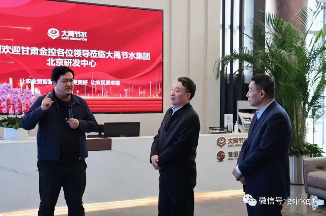 2月23日,甘肅金控集團(tuán)黨委書(shū)記、董事長(zhǎng)祁建邦一行到大禹節(jié)水北京研發(fā)中心和天津武清區(qū)農(nóng)村污水處理工程現(xiàn)場(chǎng)參觀考察。