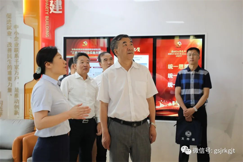 郭承錄實地觀摩了企業(yè)黨建引領(lǐng)、業(yè)務(wù)開展和文化建設(shè)工作,重點了解政府性融資擔保體系建設(shè)、風險防范和數(shù)字化轉(zhuǎn)型等情況,并召開座談會,聽取甘肅金控集團服務(wù)實體經(jīng)濟、深化國企改革、完善金融板塊和防范化解重點風險等情況匯報。