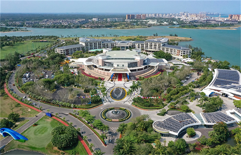 3月24日拍攝的博鰲亞洲論壇國(guó)際會(huì)議中心(無(wú)人機(jī)照片)。新華社記者 郭程 攝