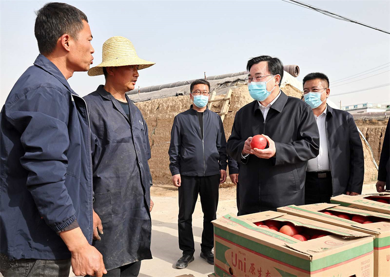 在白銀區(qū)武川鄉(xiāng)紅峴村、靖遠縣東灣現(xiàn)代農(nóng)業(yè)產(chǎn)業(yè)園,胡昌升走進田間地頭、蔬菜大棚,與正在勞作的群眾親切交流,詳細詢問春耕生產(chǎn)、鄉(xiāng)村振興等情況。他強調(diào),要做好農(nóng)資農(nóng)機服務(wù)保障,加強農(nóng)業(yè)技術(shù)指導(dǎo),全力抓好春耕生產(chǎn)。要善于挖掘和利用本地優(yōu)勢資源發(fā)展特色富民產(chǎn)業(yè),培育壯大新型農(nóng)業(yè)經(jīng)營主體,提升組織化集約化水平,促進農(nóng)業(yè)增產(chǎn)增效、農(nóng)民增收致富。要落實五級書記抓鄉(xiāng)村振興要求,發(fā)揮好基層黨組織和黨員干部作用,更好組織群眾、宣傳群眾、凝聚群眾、服務(wù)群眾,緊緊圍繞促進農(nóng)民增收這個中心任務(wù),把黨組織建在產(chǎn)業(yè)鏈上,把黨員聚在產(chǎn)業(yè)鏈上,讓群眾富在產(chǎn)業(yè)鏈上,把黨的組織優(yōu)勢轉(zhuǎn)化為加快鄉(xiāng)村發(fā)展的實際成效。