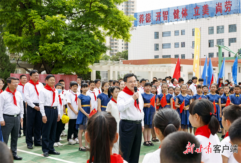 在“六一”國際兒童節(jié)即將到來之際,省委書記、省人大常委會主任胡昌升5月31日來到蘭州實驗小學(xué),參加“傳承紅色基因、展現(xiàn)新時代風(fēng)采”主題活動,代表省委、省政府向全省廣大少年兒童致以節(jié)日的祝福,向在一線辛勤工作的廣大教師和少兒工作者致以崇高敬意。
