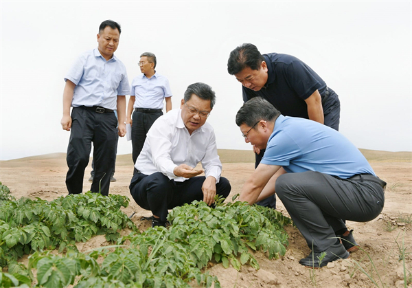 任振鶴強調(diào),要充分發(fā)揮現(xiàn)有水利工程綜合減災(zāi)作用,優(yōu)化調(diào)整供水方案,精準(zhǔn)調(diào)配抗旱水源,先生活、后生產(chǎn),先節(jié)水、后調(diào)水,先地表、后地下,優(yōu)先保障人畜飲水,努力保障農(nóng)業(yè)灌溉用水需求。要立足減損就是增產(chǎn),動員群眾開展生產(chǎn)自救,組織專家和農(nóng)技人員包片負(fù)責(zé)、服務(wù)到田,分區(qū)域、分作物、分品種拿出精準(zhǔn)、有效、科學(xué)的措施,能澆一分是一分、能保一畝是一畝,最大限度擴大灌溉面積,實現(xiàn)重災(zāi)區(qū)少減產(chǎn)、輕災(zāi)區(qū)能穩(wěn)產(chǎn)。要密切監(jiān)測天氣狀況,利用一切有利條件,大力開展人工增雨作業(yè),有效增加降水補給。要切實發(fā)揮農(nóng)業(yè)保險的災(zāi)害“減震器”作用,開辟綠色通道,簡化理賠程序,盡早兌付到位,維護群眾利益。要著眼早秋損、晚秋補,適時補種改種晚秋作物,抓住時節(jié),想方設(shè)法補歉,力爭筑牢全年糧食及農(nóng)業(yè)豐收的最后一道防線。要堅持藏糧于地、藏糧于技,加強高標(biāo)準(zhǔn)農(nóng)田建設(shè),大力推廣高效節(jié)水灌溉技術(shù),補齊農(nóng)業(yè)基礎(chǔ)設(shè)施短板,增強抵御自然災(zāi)害能力。要通過鼓勵外出務(wù)工、促進三產(chǎn)融合拓寬農(nóng)民增收渠道,把災(zāi)情對“三農(nóng)”的影響降到最低。