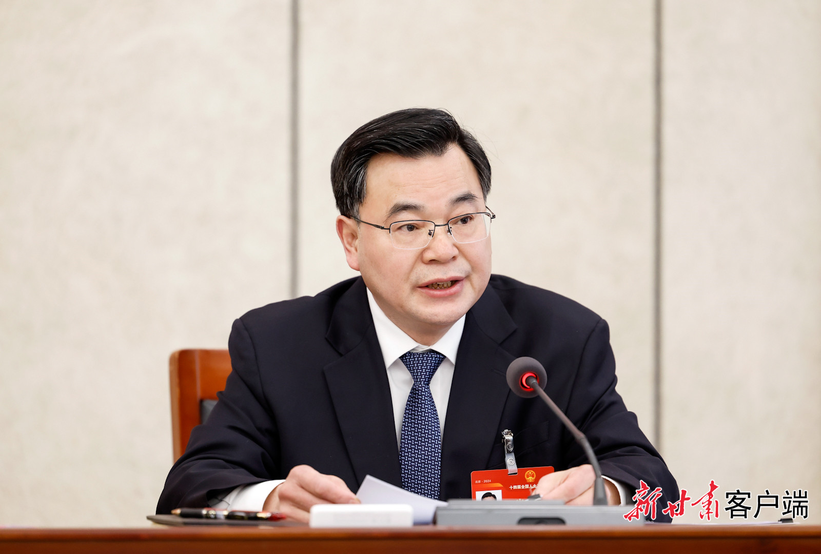 3月5日,全國(guó)人大代表、省委書記、省人大常委會(huì)主任胡昌升在甘肅代表團(tuán)審議李強(qiáng)總理所作的政府工作報(bào)告。(記者孟捷)