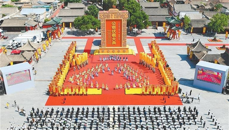 恭讀祭文畢。全體行三鞠躬禮,表達(dá)對(duì)人文始祖的無限追思和尊崇。