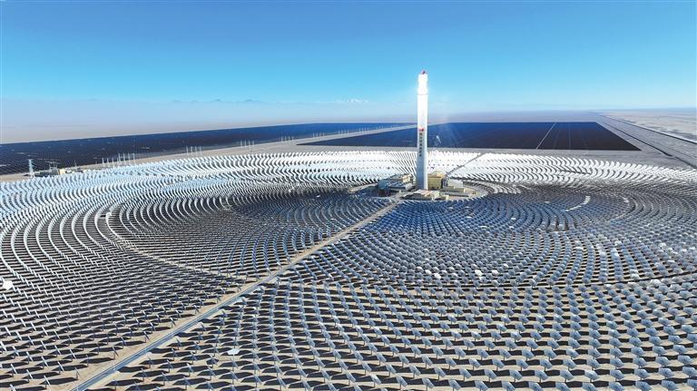 在國家第二批“沙戈荒”基地唯一“光熱+”試點示范項目基地——中國綠發(fā)金塔多能互補基地項目10萬千瓦光熱電站,年均可為電網(wǎng)輸送14.5億千瓦時清潔電力,可供約70萬戶家庭全年使用,每年可節(jié)約標(biāo)準(zhǔn)煤約48萬噸,減少二氧化碳排放約136萬噸;