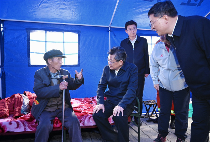 在文峰鎮(zhèn)樺林村,任振鶴深入震中,實(shí)地察看房屋、道路等受損情況,來到安置點(diǎn)看望受災(zāi)群眾,隨后在臨時(shí)指揮部主持召開會(huì)議,與省軍區(qū)、省直相關(guān)部門及定西市、隴西縣、文峰鎮(zhèn)等負(fù)責(zé)同志進(jìn)行會(huì)商研判,安排部署下一步工作。他指出,地震發(fā)生后,各級(jí)各相關(guān)部門聞“震”而動(dòng)、行動(dòng)迅速,第一時(shí)間開展抗震救援、排險(xiǎn)除險(xiǎn)工作,奠定了重要基礎(chǔ)。要堅(jiān)持“省級(jí)指導(dǎo)、市縣統(tǒng)籌、各方支持、群眾參與”,強(qiáng)化統(tǒng)一調(diào)度,落實(shí)責(zé)任、整合資源,以科學(xué)有效的指揮、周密完備的部署,繼續(xù)做好抗震救災(zāi)各項(xiàng)工作。要全面排查風(fēng)險(xiǎn)隱患,加強(qiáng)余震監(jiān)測(cè)預(yù)警,聚焦農(nóng)房、學(xué)校、養(yǎng)老院、衛(wèi)生院、水庫(kù)、道路、工礦、橋涵、地質(zhì)災(zāi)害點(diǎn)等可能受地震影響的重點(diǎn)部位,不漏一戶、不落一處,早發(fā)現(xiàn)、早處置,有安全風(fēng)險(xiǎn)的及時(shí)轉(zhuǎn)移,嚴(yán)防發(fā)生次生災(zāi)害。要妥善安置受災(zāi)群眾,按照“五有”要求保障好群眾基本生活,讓受災(zāi)群眾感到踏實(shí)、安穩(wěn)、溫暖。要搶通保暢基礎(chǔ)設(shè)施,緊盯水、電、路、訊,全力做好排查搶修等工作,推動(dòng)盡快恢復(fù)正常生產(chǎn)生活秩序。要迅速開展抗災(zāi)自救,用好各方救援力量,引導(dǎo)動(dòng)員群眾做好農(nóng)房修復(fù)、廢墟清理等工作。要切實(shí)增強(qiáng)抗震意識(shí),進(jìn)一步完善應(yīng)急預(yù)案,加強(qiáng)防震減災(zāi)安全知識(shí)宣傳,不斷提升群眾防災(zāi)減災(zāi)意識(shí),減少災(zāi)害帶來的人身安全、經(jīng)濟(jì)財(cái)產(chǎn)損失。