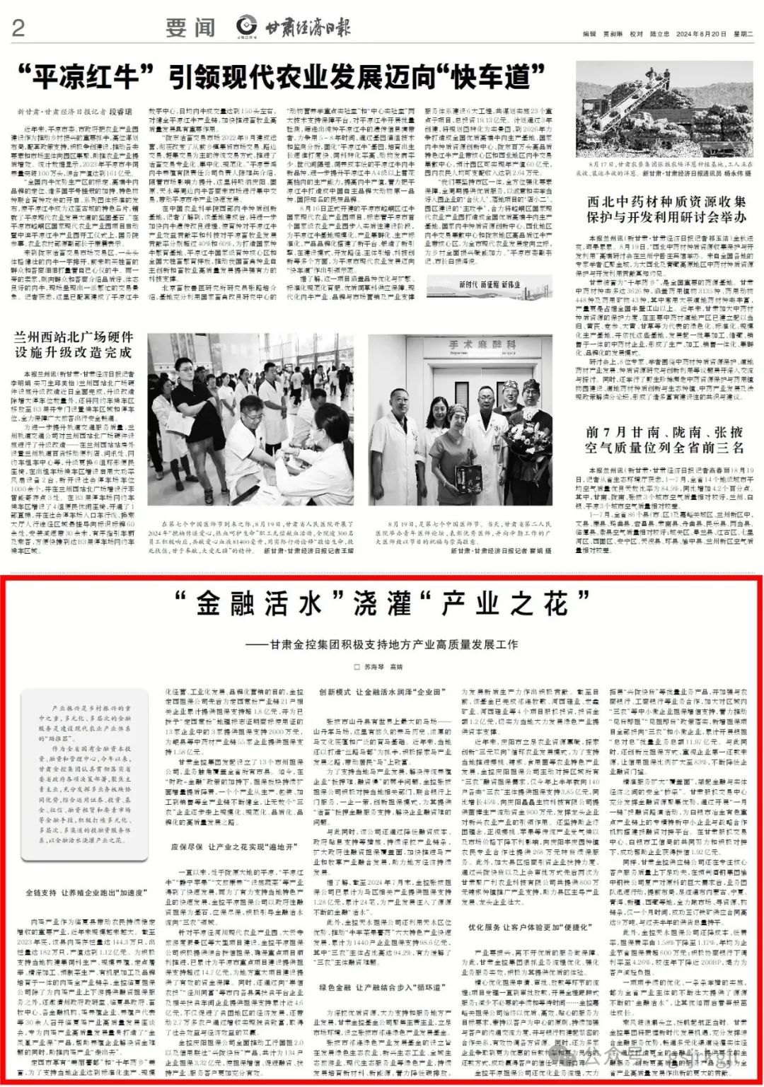 作為全省國(guó)有金融資本投資、融資和管理中心,今年以來(lái),甘肅金控集團(tuán)認(rèn)真貫徹落實(shí)省委省政府各項(xiàng)決策部署,聚焦主責(zé)主業(yè),充分發(fā)揮多業(yè)務(wù)板塊協(xié)同優(yōu)勢(shì),綜合運(yùn)用證券、投資、基金、征信、融資租賃和要素市場(chǎng)等金融手段,積極打造多元化、多層次、多渠道的投融資服務(wù)體系,以金融活水澆灌產(chǎn)業(yè)之花。