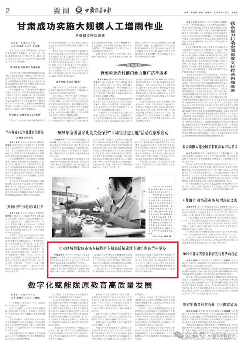 媒體關(guān)注 | 甘肅區(qū)域性股權(quán)市場(chǎng)專精特新專板高質(zhì)量建設(shè)專題培訓(xùn)在蘭州舉辦