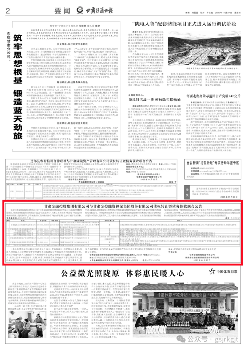 甘肅金融控股集團有限公司與甘肅金控融資擔保集團股份有限公司債權(quán)轉(zhuǎn)讓暨債務催收聯(lián)合公告