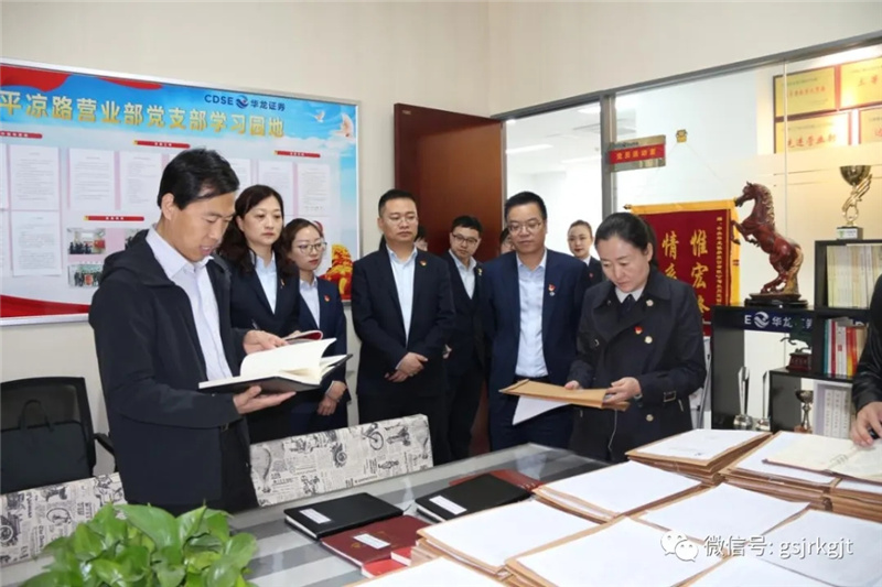 考核組還對金控集團華龍證券2020年度黨建工作責(zé)任制落實情況進行了民主測評、個別談話,查閱了黨建基礎(chǔ)資料,并對金控集團辦公室、金控擔(dān)保集團、華龍證券蘭州平?jīng)雎窢I業(yè)部等基層黨組織黨建工作情況進行了現(xiàn)場檢查。
