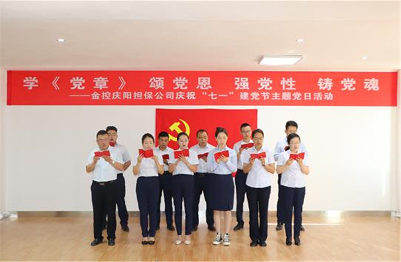 6月30日,在中國共產(chǎn)黨建黨99周年之際,金控慶陽擔保黨支部開展以“學《黨章》、頌黨恩、強黨性、鑄黨魂”為主題的慶?!捌咭弧苯h節(jié)主題黨日活動,公司全體黨員重溫《入黨誓詞》,集體誦讀《中國共產(chǎn)黨章程》,感悟初心、牢記使命,推動集團公司黨委“轉(zhuǎn)觀念、破積習、追標桿、強基礎、提效能”主題實踐活動持續(xù)深入開展。