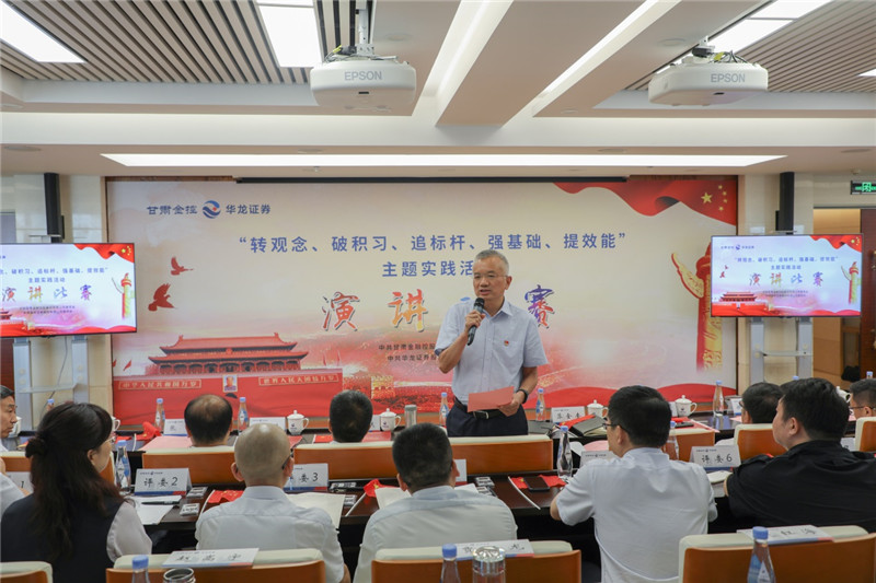 金控集團黨委書記、董事長,華龍證券黨委書記、董事長陳牧原致辭,指出在這個特殊的日子里,我們開展主題黨日活動和演講比賽,恭賀中國共產(chǎn)黨成立99周年,意義重大。同時強調(diào),集團黨委針對經(jīng)營管理中顯現(xiàn)的一些問題,在全系統(tǒng)開展“轉(zhuǎn)觀念、破積習、追標桿、強基礎、提效能”主題實踐活動,倡導廣大員工以自我革新的勇氣,破除企業(yè)行政化、機關化的積習陋習,樹牢市場經(jīng)營觀念,對照標桿,俯身抬頭干實事,提高效能強執(zhí)行,勇于進取,奮勇爭先,創(chuàng)造更好的業(yè)績,為黨旗添彩,為黨的生日獻禮。