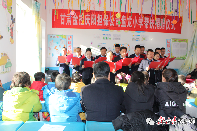 在同盤龍小學師生交流中,安立博得知,學生對國學經典讀物有著濃厚興趣。在他的積極努力下,甘肅金控慶陽融資擔保有限公司向盤龍小學捐贈了國學經典圖書和防寒服,并在捐贈當天舉行了國學經典誦讀聯誼共建活動,激發了學生們學習國學的濃厚興趣。