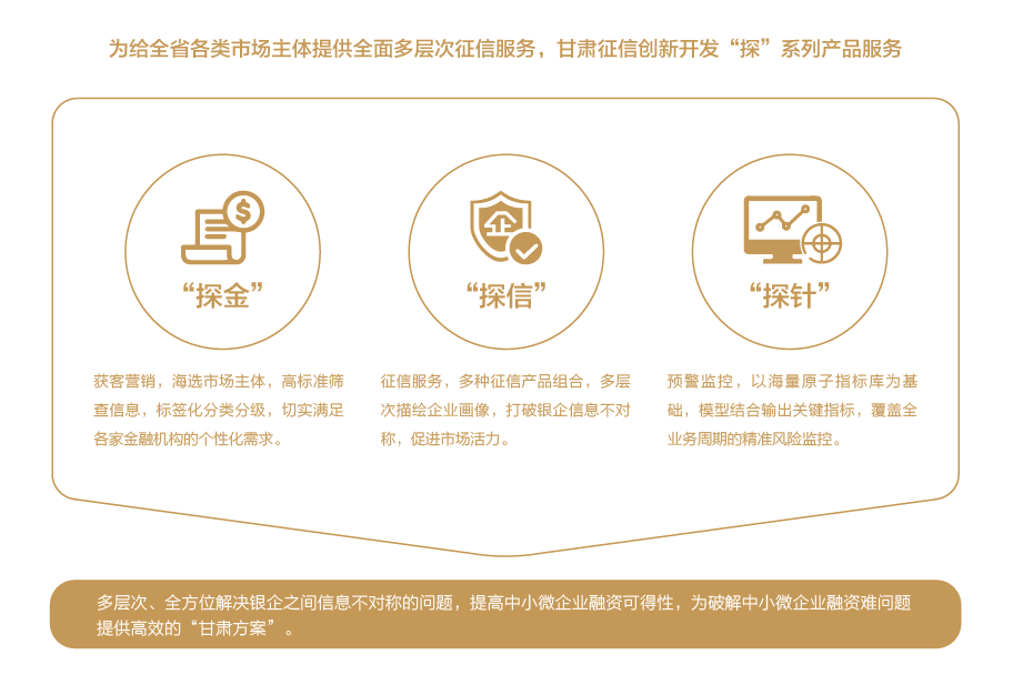 甘肅征信建立以征信數(shù)據(jù)庫、數(shù)據(jù)處理系統(tǒng)、征信智能應用系統(tǒng)為核心的企業(yè)征信服務平臺,為客戶提供征信報告、信息核驗、信用評分、智能風控分析決策等綜合信用服務,實現(xiàn)在線經(jīng)濟金融、社會管理、公共服務等多領域的廣泛應用。